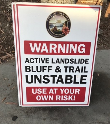 In August 2019 three people were killed when a sandstone cliff collapsed at a beach in Encinitas, north of San Diego. The collapse near Grandview Beach was blamed on natural erosion. There were signs posted at the beach warning people to stay back from the unstable bluffs. This erosion is usually slow and gradual, but sometimes occurs in major bluff failures or collapses. Being caught in a bluff collapse area can cause serious injury or death, a beach safety guide said.