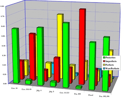 Preterite (waw-imperfect) verbs dominate in narrative passages and are rare in poetic passages.