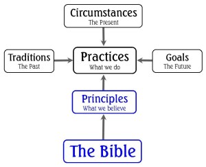 We need to distinguish between Scriptural principles and Christian practices: principles are fixed, whereas the practices can change and should change when there are significant changes in circumstances. We should know the purpose behind our practices, and periodically consider whether other methods would be more appropriate. A practice shouldn’t be viewed as better only because it is old, or better simply because it is new.